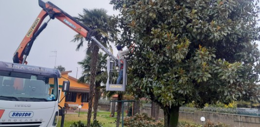 Potatura e abbattimento piante con gru e cesta elevatrice